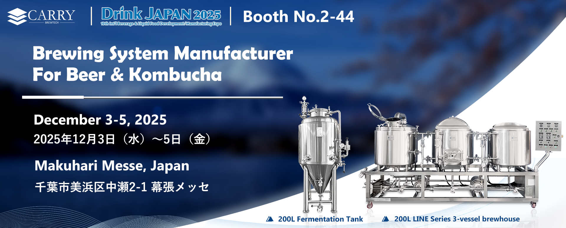 Carry Brewtech will attend the show at DrinkJapan 2025 | Exhibition Introduction Carry Brewtech is excited to annouce our participation in DrinkJapan 2025. During the exhibition, Carry Brewtech will show our best-selling 200L 3-Vessel brewhouse system, and also a 200L fermentation tank, which is the m